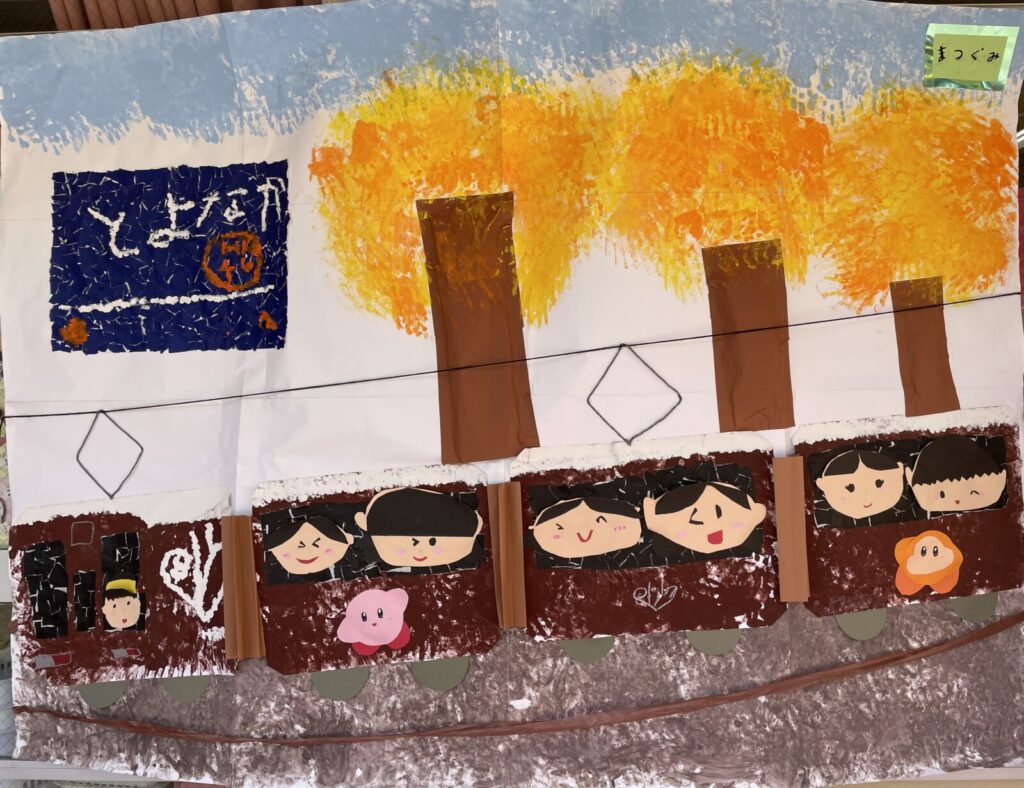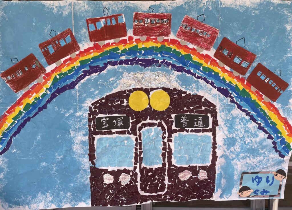 年長児が参加した豊中レールウェイフェスティバルの絵画も展示しました🚃