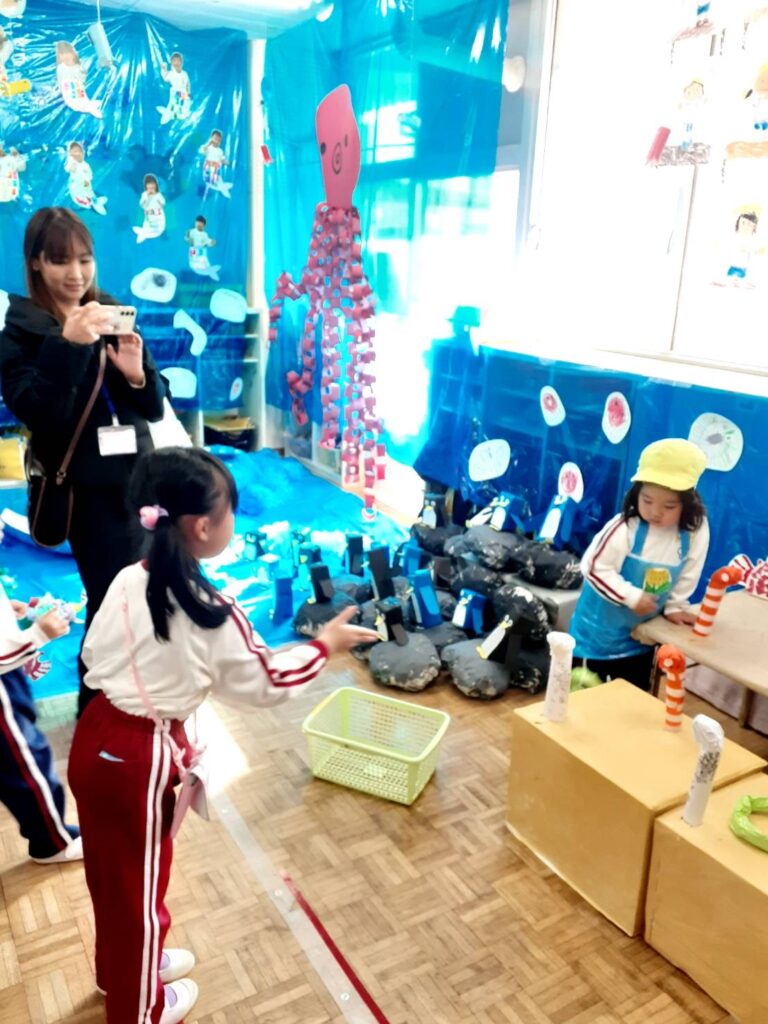 魚釣りや、チンアナゴの輪投げどのコーナーも大盛り上がり!イワシの大群のコーナーではイワシに囲まれて見上げる姿が可愛らしかったです🐡♡