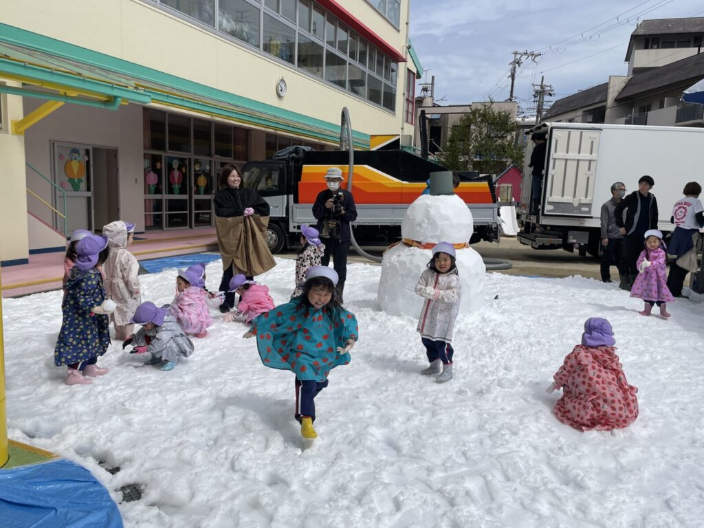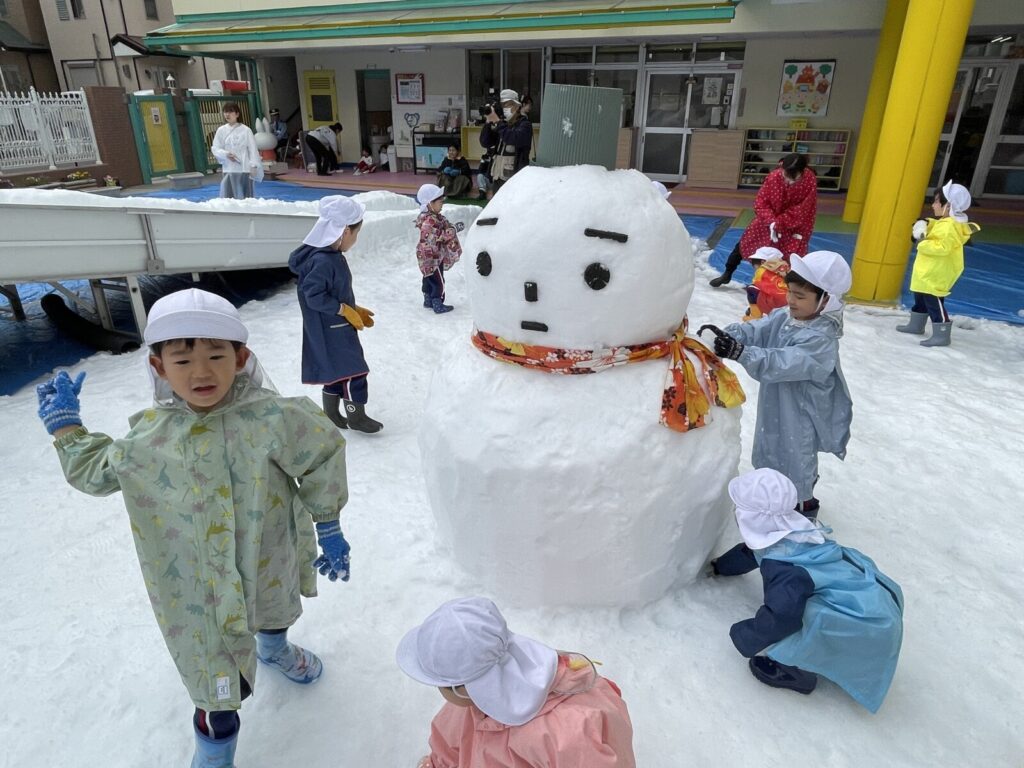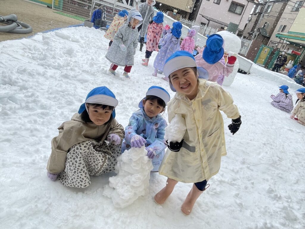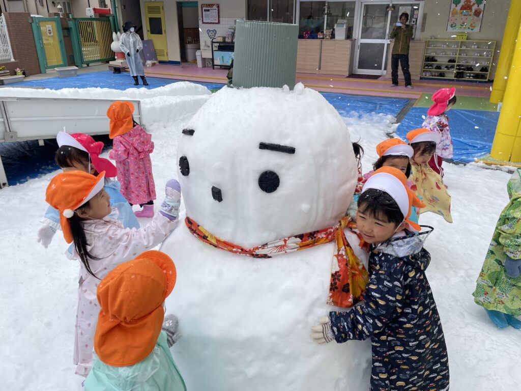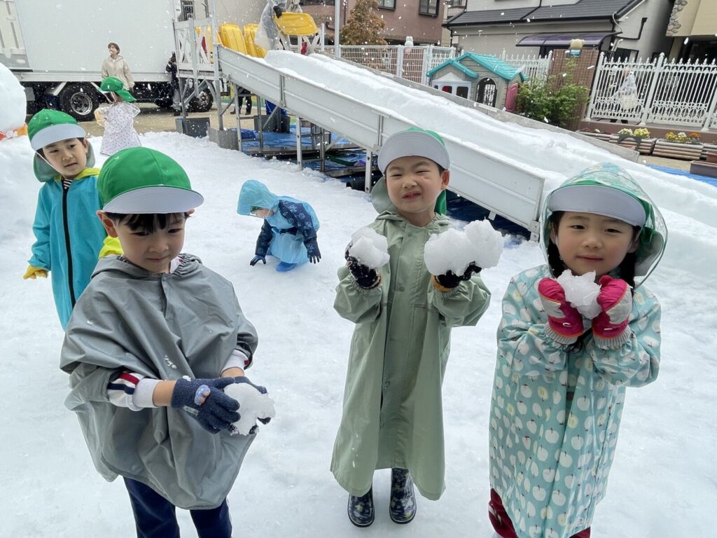園庭に広がった雪に大喜びの子どもたち♪雪だるまを作ったり、雪合戦をして遊びました⛄️