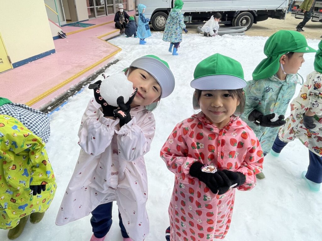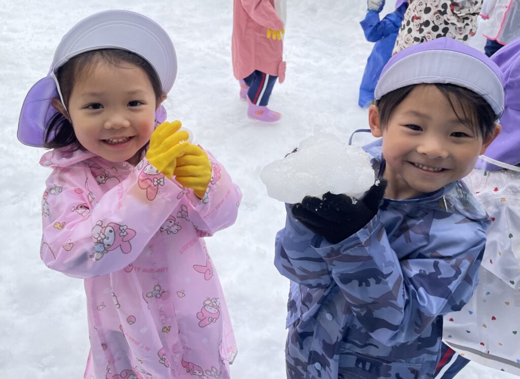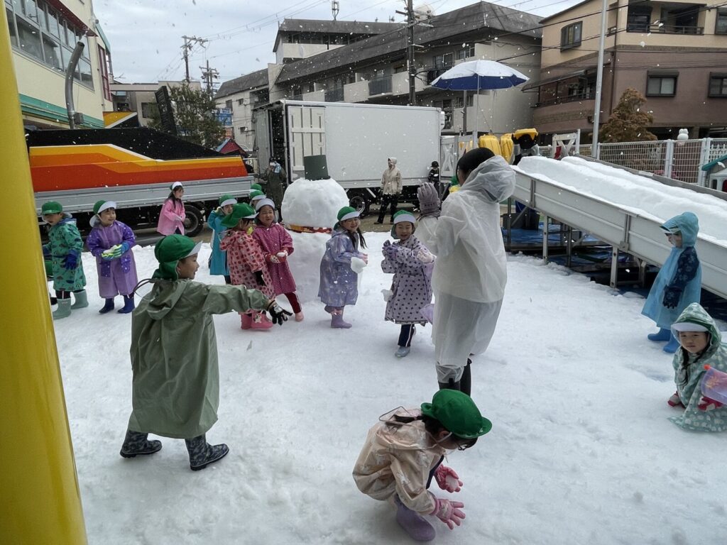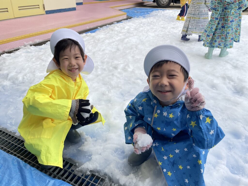 雪が降ってくる時間もあり、「すごーい!」「冷たいなー」と言いながら、驚いたり喜んでいる様子が見られました☺️