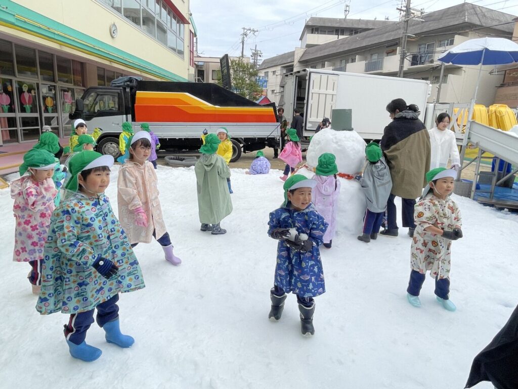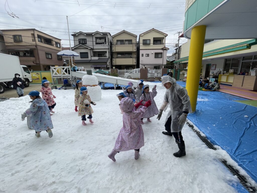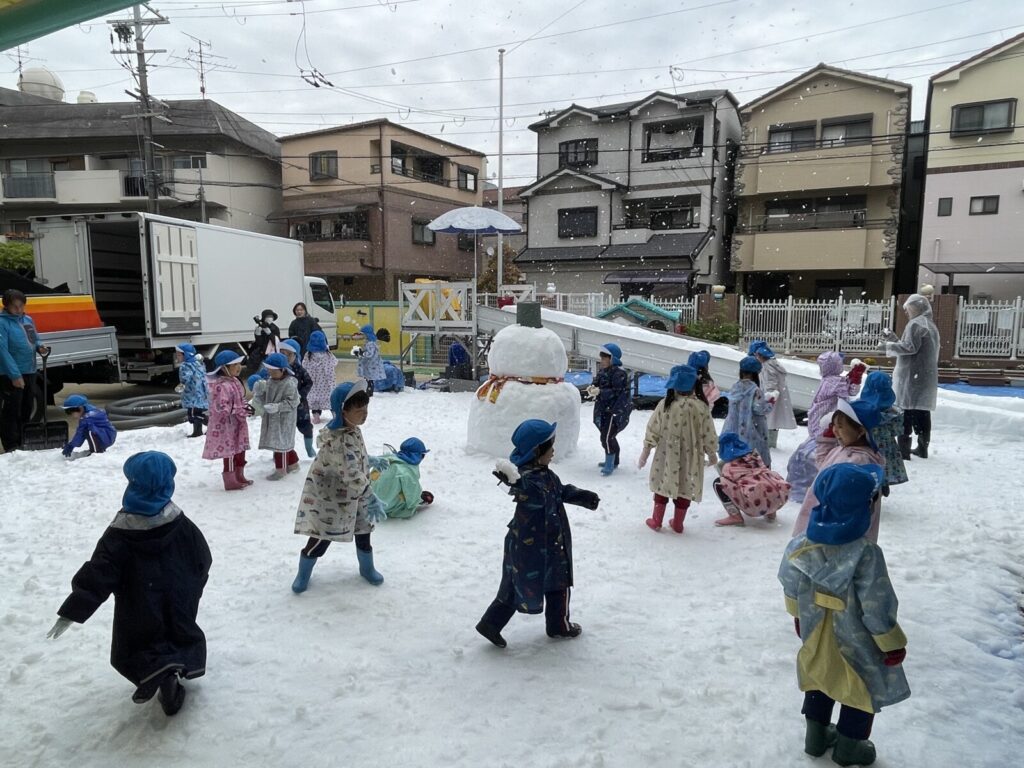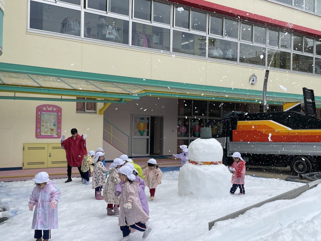雪が降ってくる時間もあり、「すごーい!」「冷たいなー」と言いながら、驚いたり喜んでいる様子が見られました☺️