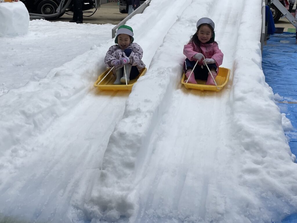 ゆきんこ遊びでは、そり滑りも出来ます!