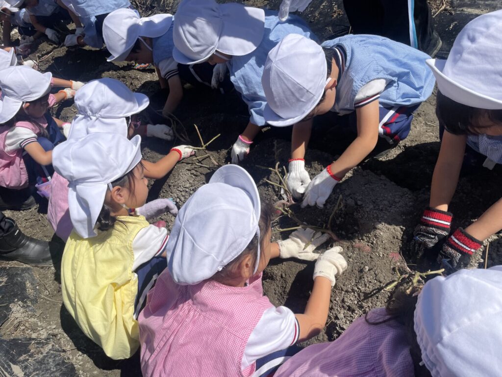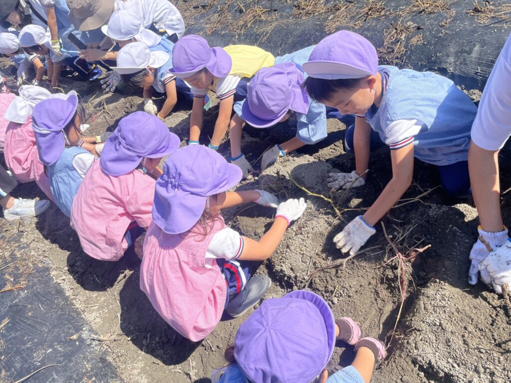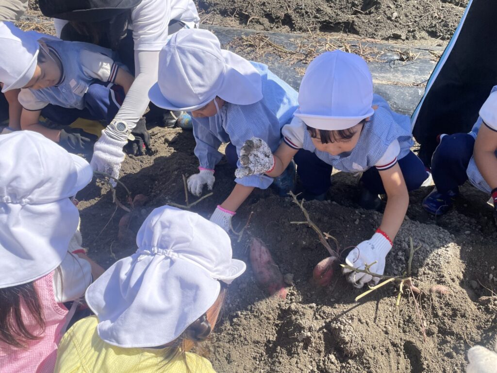 少しずつお芋が出てくると・・・「先生、見てみてー!!」と嬉しそうな声が聞こえてきました☺️