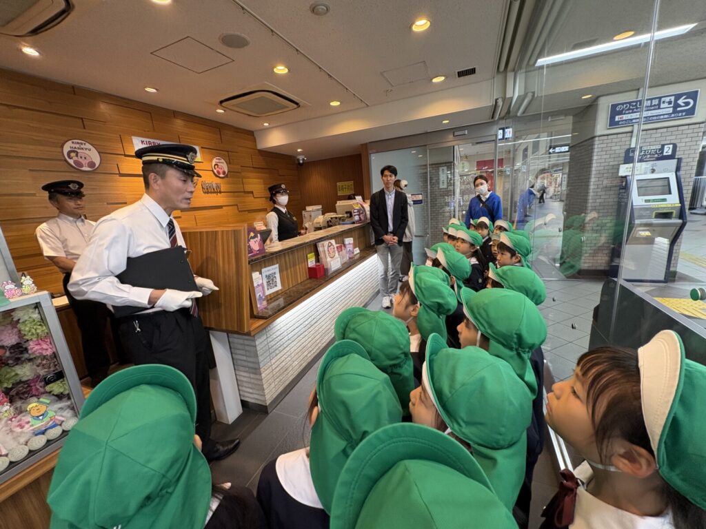 子どもたちは駅員さんのお話を真剣に聞いていました!
