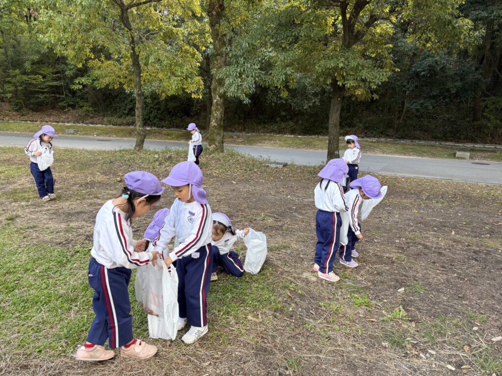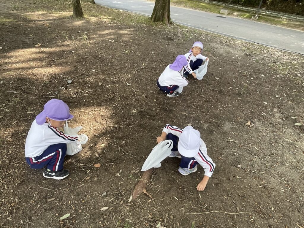 「みてみて〜!帽子かぶってる!」と様々な種類のどんぐりを一生懸命拾っていた子どもたちでした♪(๑ᴖ◡ᴖ๑)♪