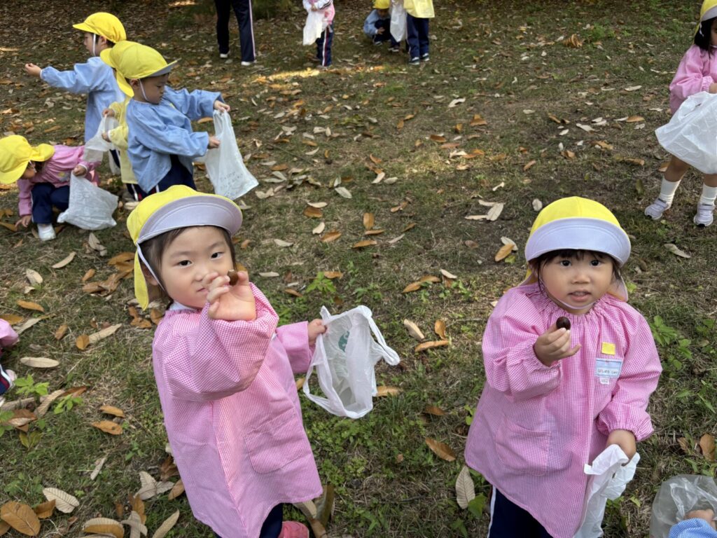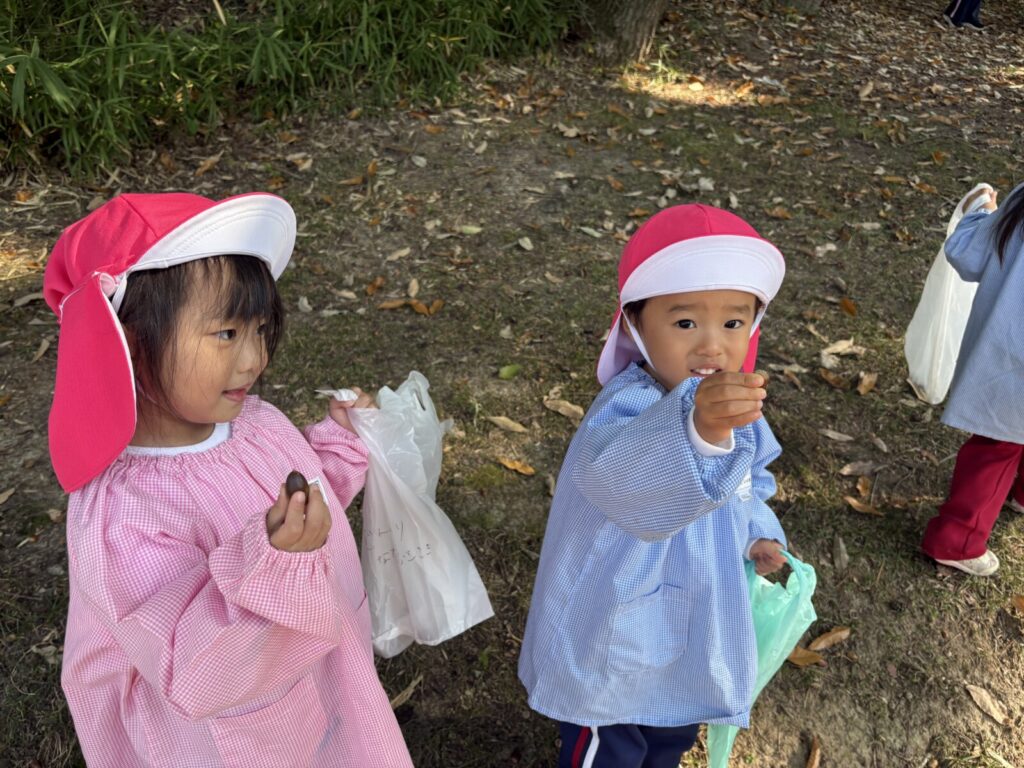 2025年11月28日 幼稚園のダイアリー 年少組 どんぐり拾い 年少組の子どもたちが、緑地公園へどんぐり拾いに行きました💨 色々な種類のどんぐりを見つけ、真剣に拾っていた子どもたち♡ 「先生見てみて〜!!!」と嬉しそうに見せてくれました♪ 赤、黄色に色づいた落ち葉を「きれ〜い!」と言いながら集めていました! 円形花壇では様々な色に咲いているコスモスの匂いを嗅いでみたり、観察をしました🌼 沢山の秋🍂を感じることができました♡ カテゴリー: 幼稚園のダイアリー ≪ 記事一覧へ戻る