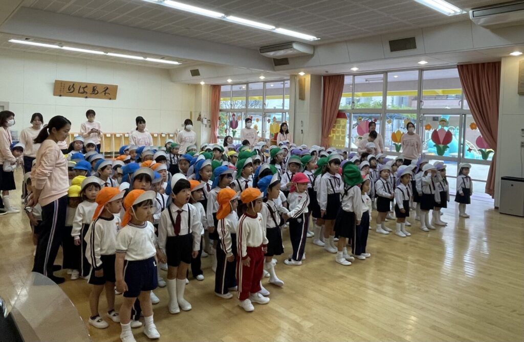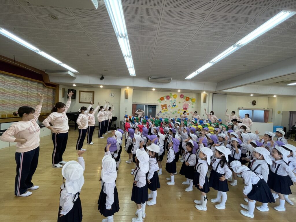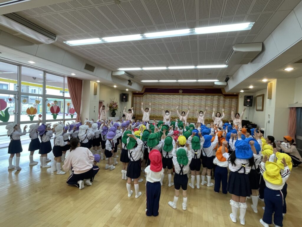 毎日、「朝の会で歌っているお歌」と「園歌」を全員で一緒に歌いました♪
